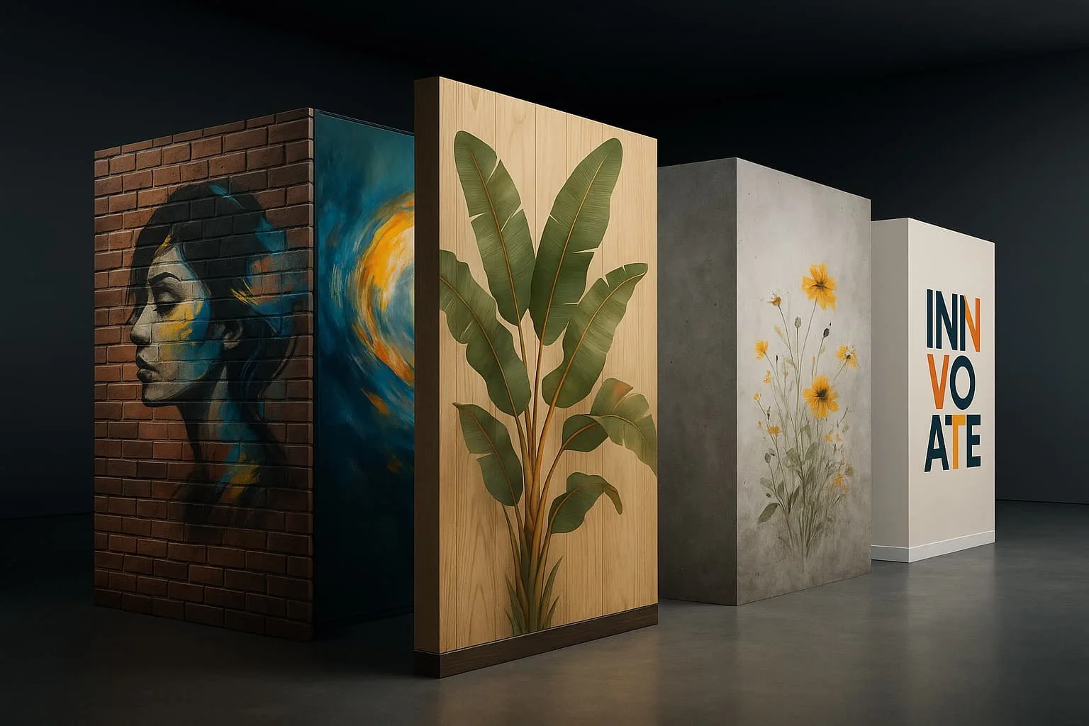 We print on drywall, brick, concrete, glass, metal, and wood. For unsuitable surfaces, we offer custom panels instead.